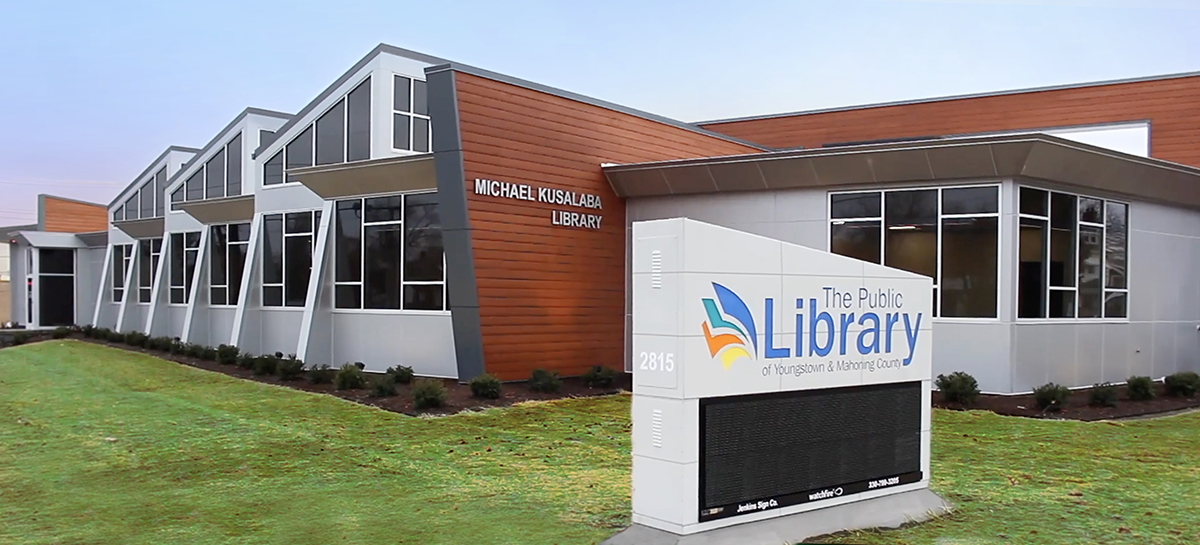 What stands today at 2815 Mahoning Avenue is the completely reconstructed, Michael Kusalaba Library. Made possible by the namesake’s fund, this dramatic piece of architecture reimagined what the library experience in today’s world of information and technology brings to our community. With a Makers Space, music studio, meeting spaces, and more, this educational landmark is far from the many rows of bookshelves and card catalogs of the past!