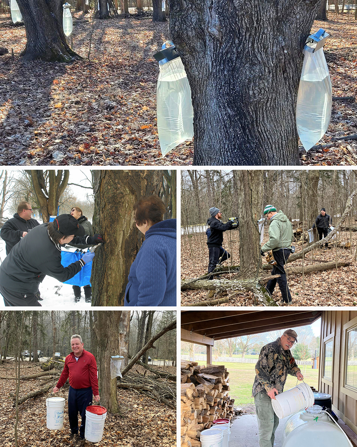 Syrup collection usually occurs during February and March and is later sold in the spring at Fellows Riverside Gardens.