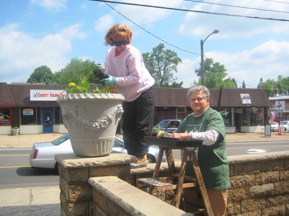 Armed with flowers provided by the city, our volunteers happily fill in the various decorative planters located along the Mahoning Avenue corridor and around Rocky Ridge. The concrete planters were donated by our Rocky Ridge Neighborhood Association to help bring more summer color and cheer to the facades of cooperating businesses and key public places. Thanks go out to all who pitch in, especially the dedicated folks who make sure flowers and planters are ready to go prior to planting day.